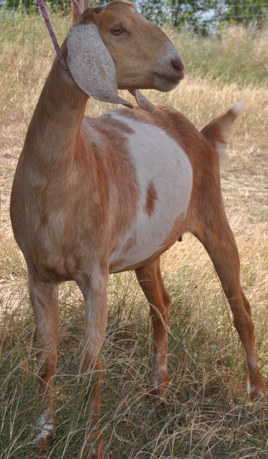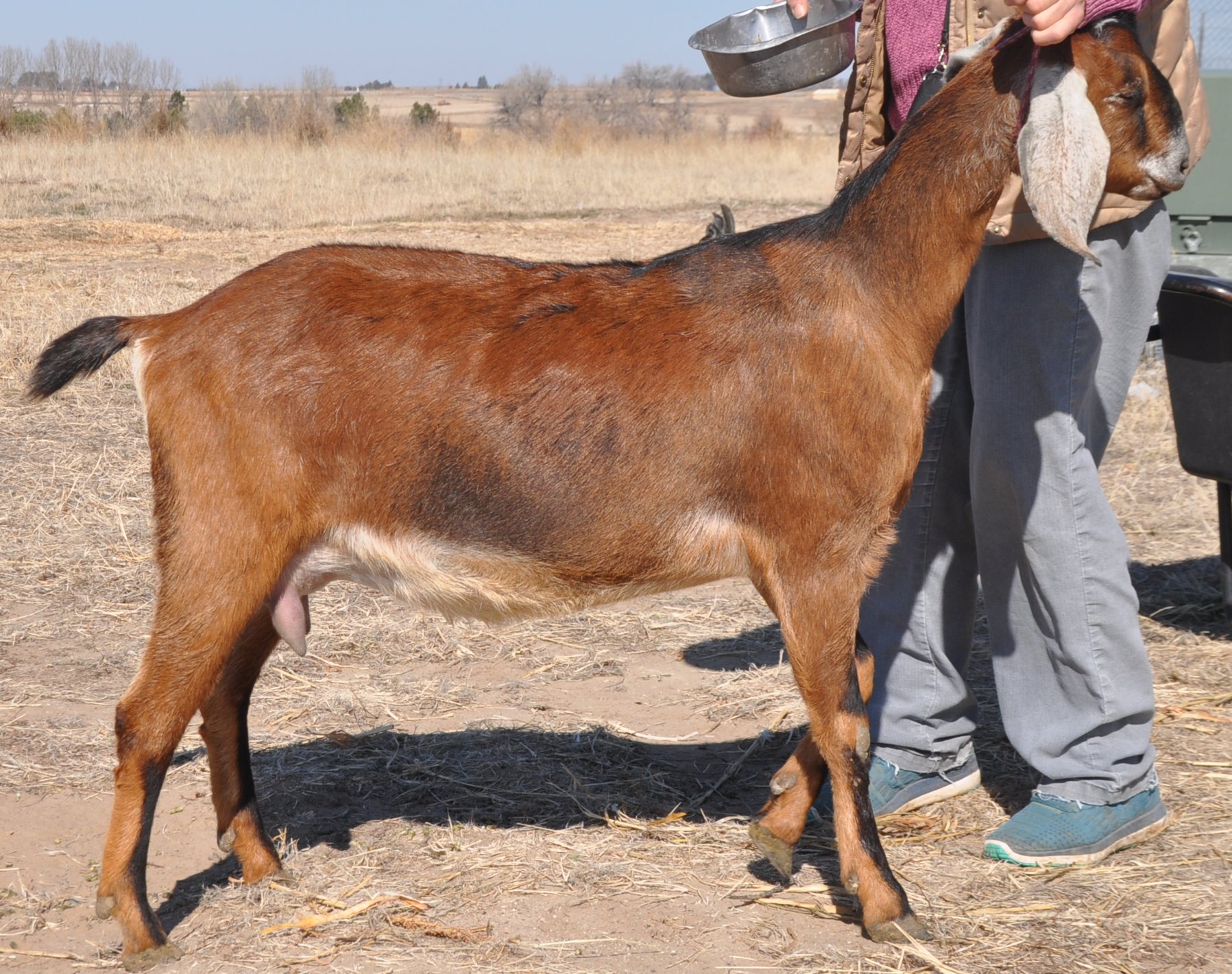 First freshening yearling, kidded Feb 21 “Blue” will be available mid-summer. She freshened with a very appealing single doeling sired by Goldthwaite Patrick that we will be retaining. We would be willing to hold her until fall if a buyer wants to repeat this breeding. $350, $400 with breeding