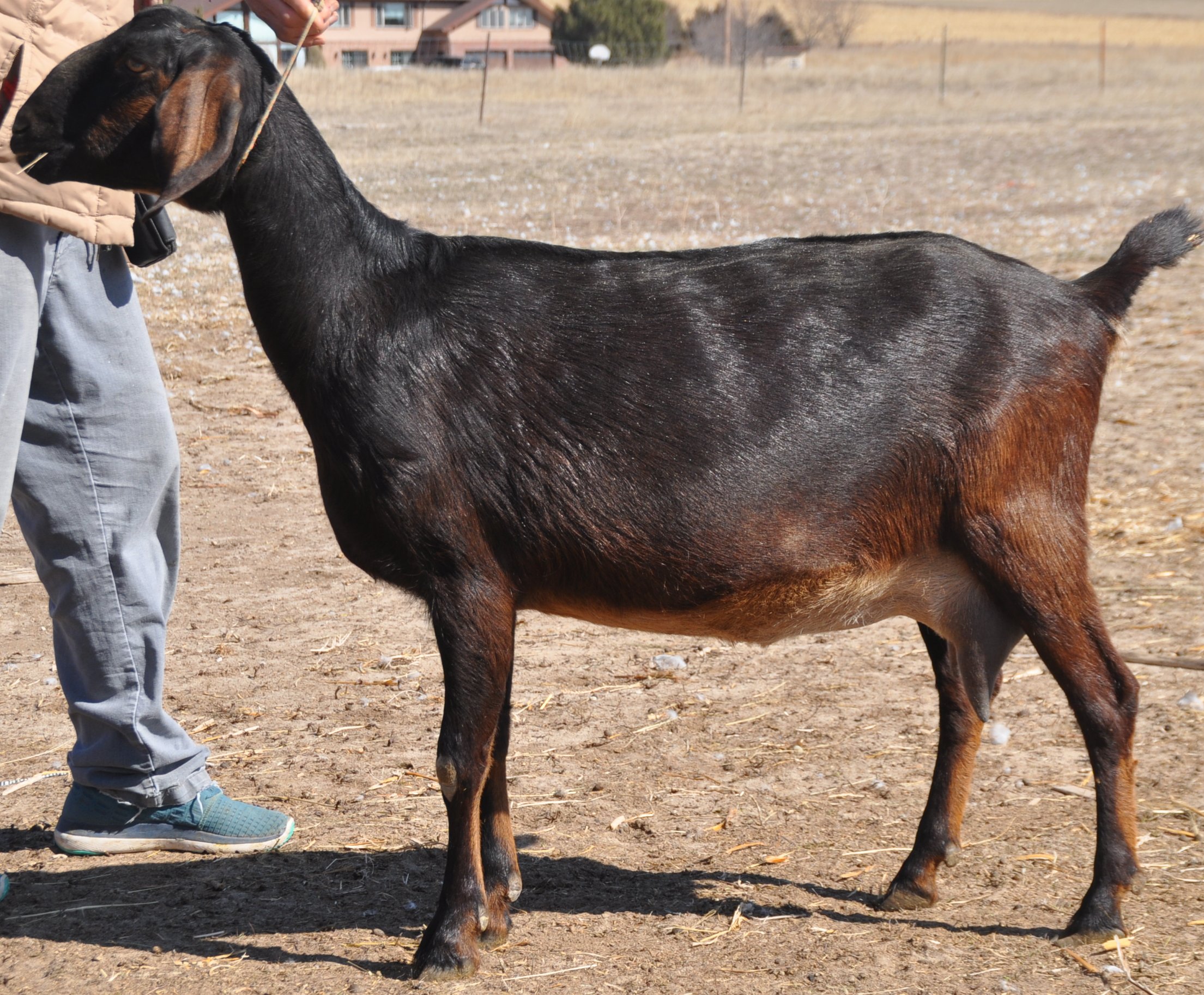 Seranade freshened with twin doelings sired by Vita-Vierre Patchouli on March 4. We’ll be retaining 1 of these kids as well as a doe kid from last year. Seranade is a littermate to Vita-Vierre Valiente, who has sired several doelings that we plan to freshen. With so much similar breeding in our herd we’ve decided that we can part with Seranade. She has nice teat size for hand milking, and we are impressed with the strength and level toplines that we see from her genetics.